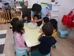 江坂校 食育【きのこ】(江坂校) 投稿日: 2026年1月17日 admin_poppo 11月12日(水) 食育でキノコを割いたり、感触を楽しみました☺ きのこを割くためにはまずキノコのお買い物から! ぶどうグループさんが度のキノコをどれだけ買ってきたらいいのかを 聞いてからいざお買い物へ!! ぶどうグループさんたちのおかげでみんなでキノコを 割くことができました☆ ぶどうグループさんありがとう☺ またお買い物よろしくお願いします👑