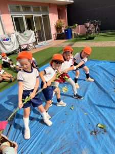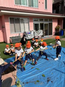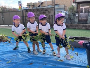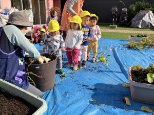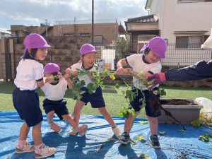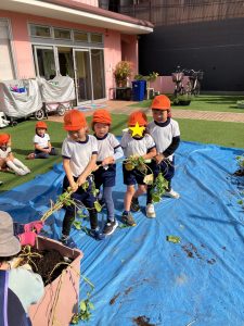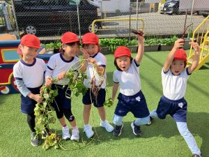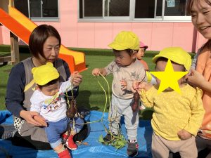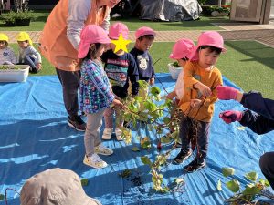 ひかり おいもほり(吹田ポッポひかり保育園) 投稿日: 2025年11月21日 admin_poppo おいもほりをしました。これなにかな~ ひっぱってみよう! みんなでひっぱろう! うんとこしょ!どっこいしょ! ちからいっぱいひっぱるぞー! こんなおいもがとれました! おいものクッキングを予定しています。 おたのしみにー♡
