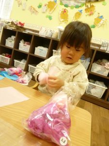 僕は袋にお花紙を詰めてるんだよ~~