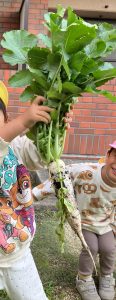 五月が丘校 大根の収穫!(五月が丘校) 投稿日: 2025年12月2日 admin_poppo 種をまいて~ お水をあげて~ 「わぁ! おおきくなったね」 と見守ってきた大根。 楽しみしてていた収穫の時がやってきました!! 立派な葉っぱの カワイイ大根を収穫!! 土を洗って落として調理室へ~🔪 給食のスープでいただきました!