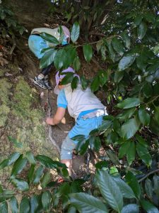 森の中に入り崖登りに挑戦!