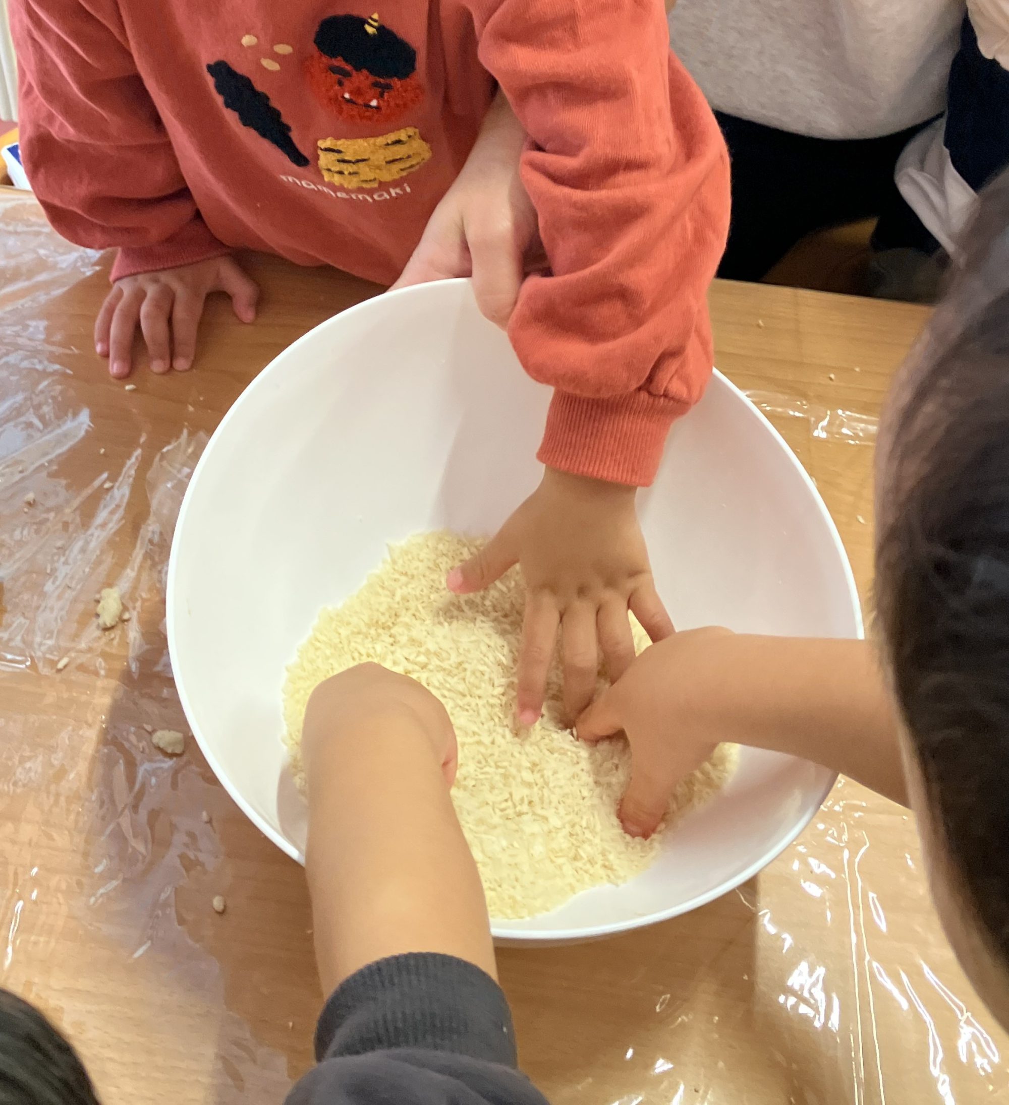 感触あそび「パン粉」(富田校)