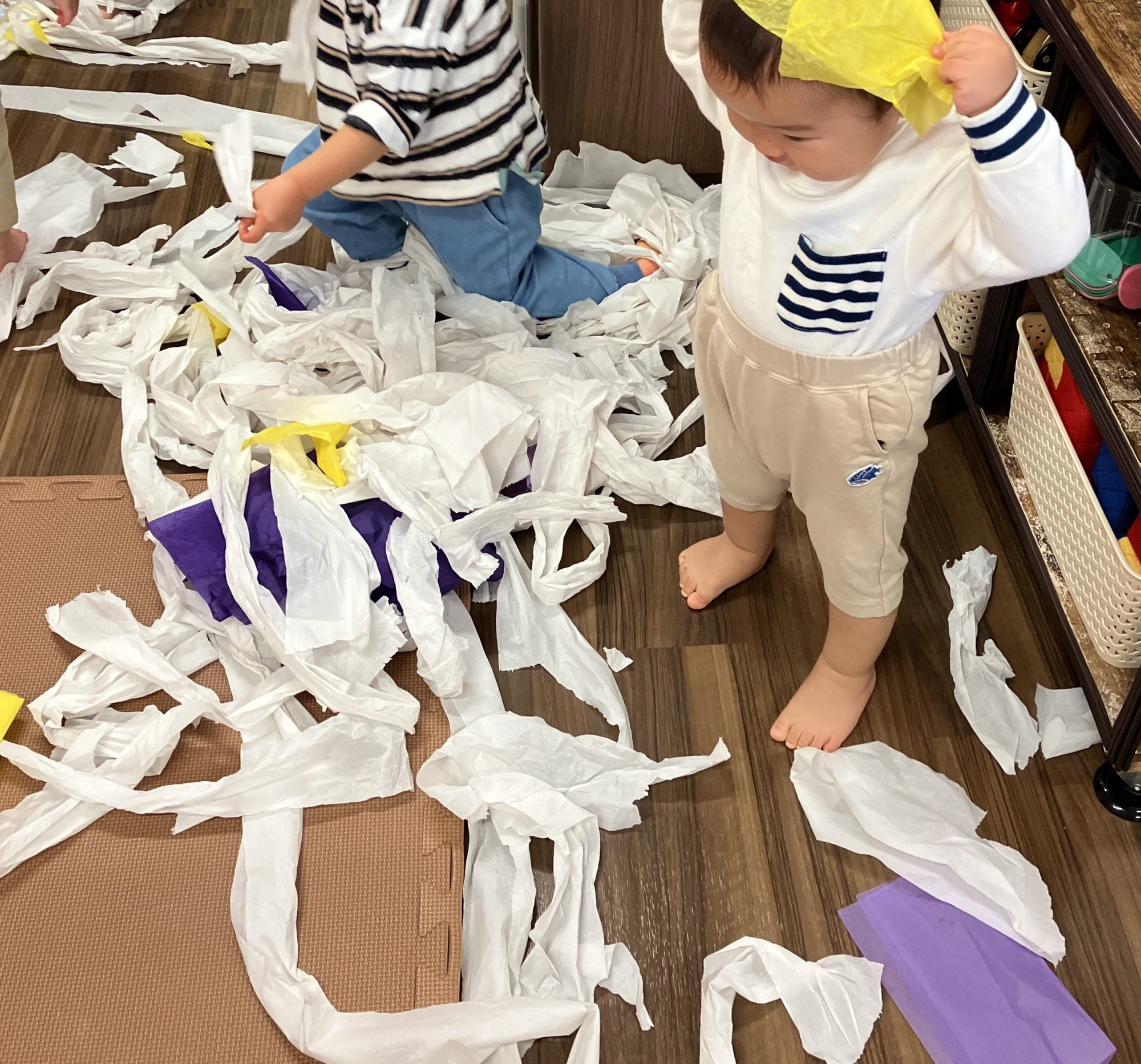感触あそび「トイレットペーパー」(富田校)